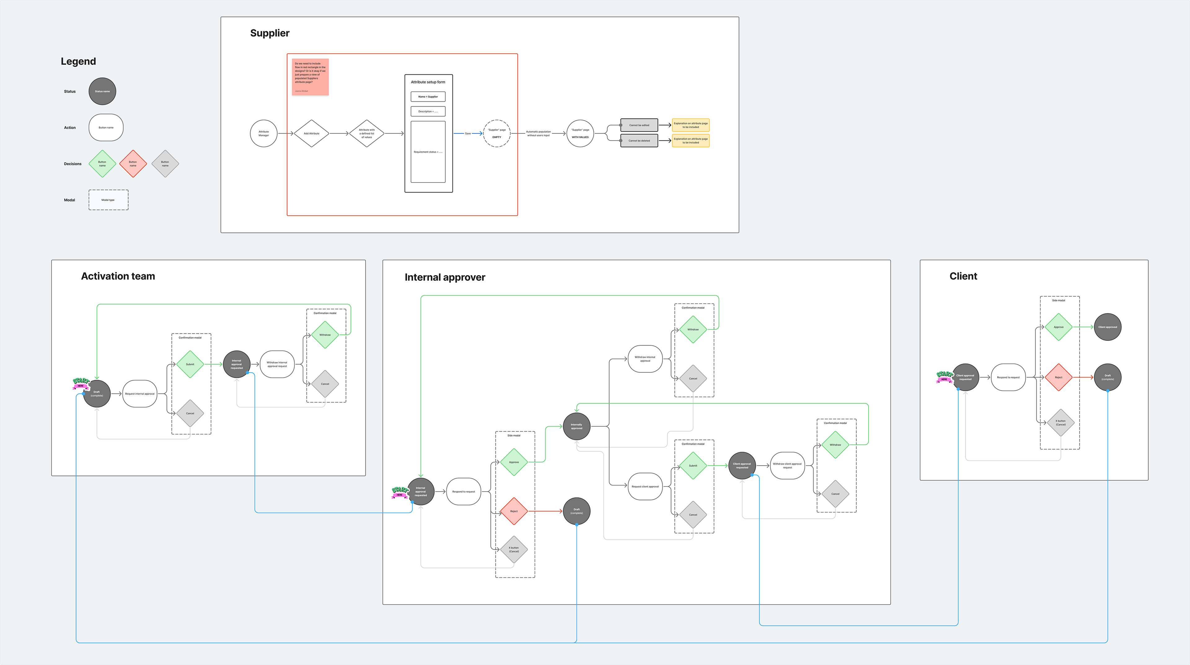 We worked on the information architecture and user flows for the key roles and core functionalities.